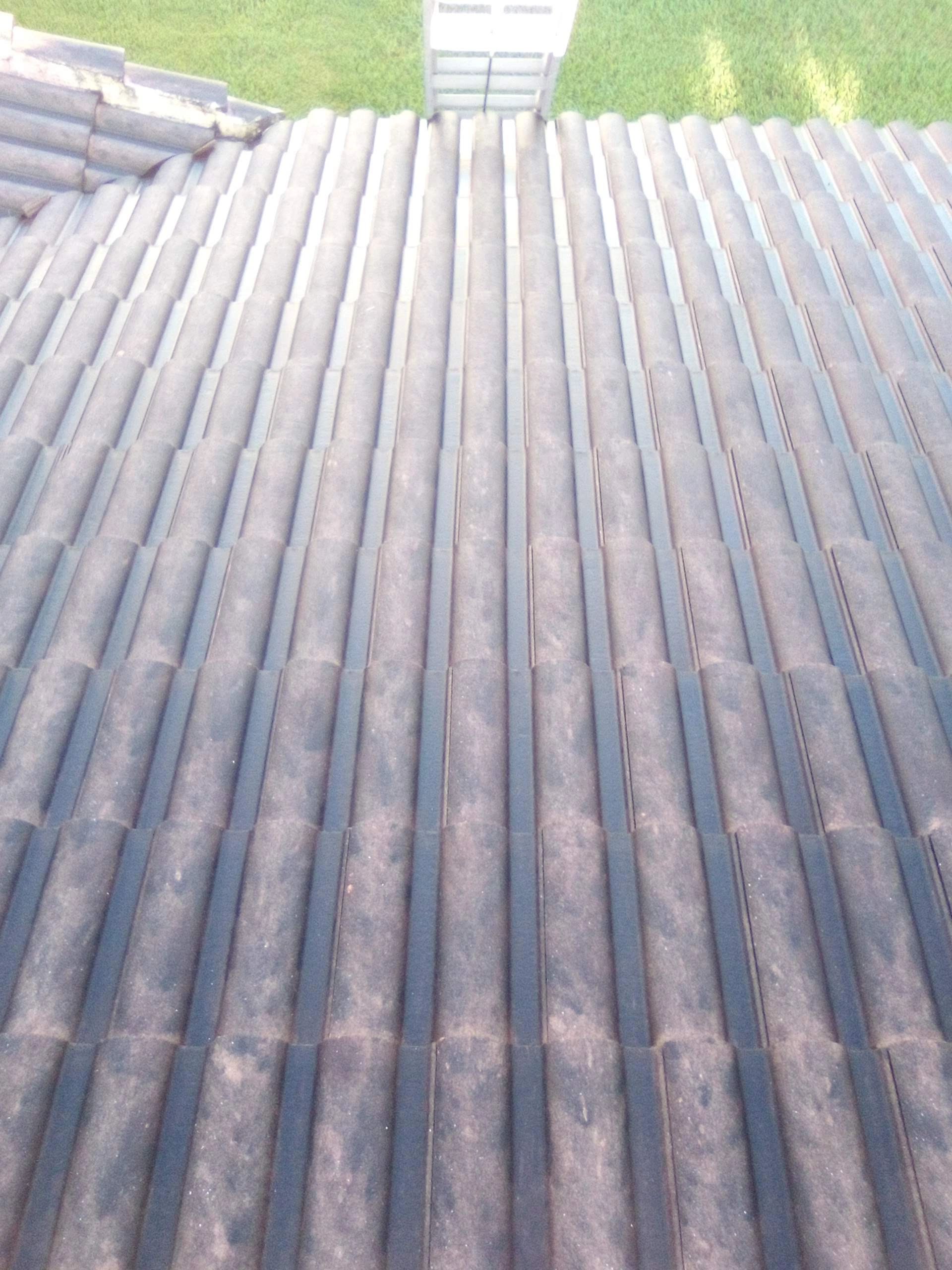 Once we surface clean the roof we again use 100% water to rinse the tiles and hit any missed spots the surface cleaner could not get to.
