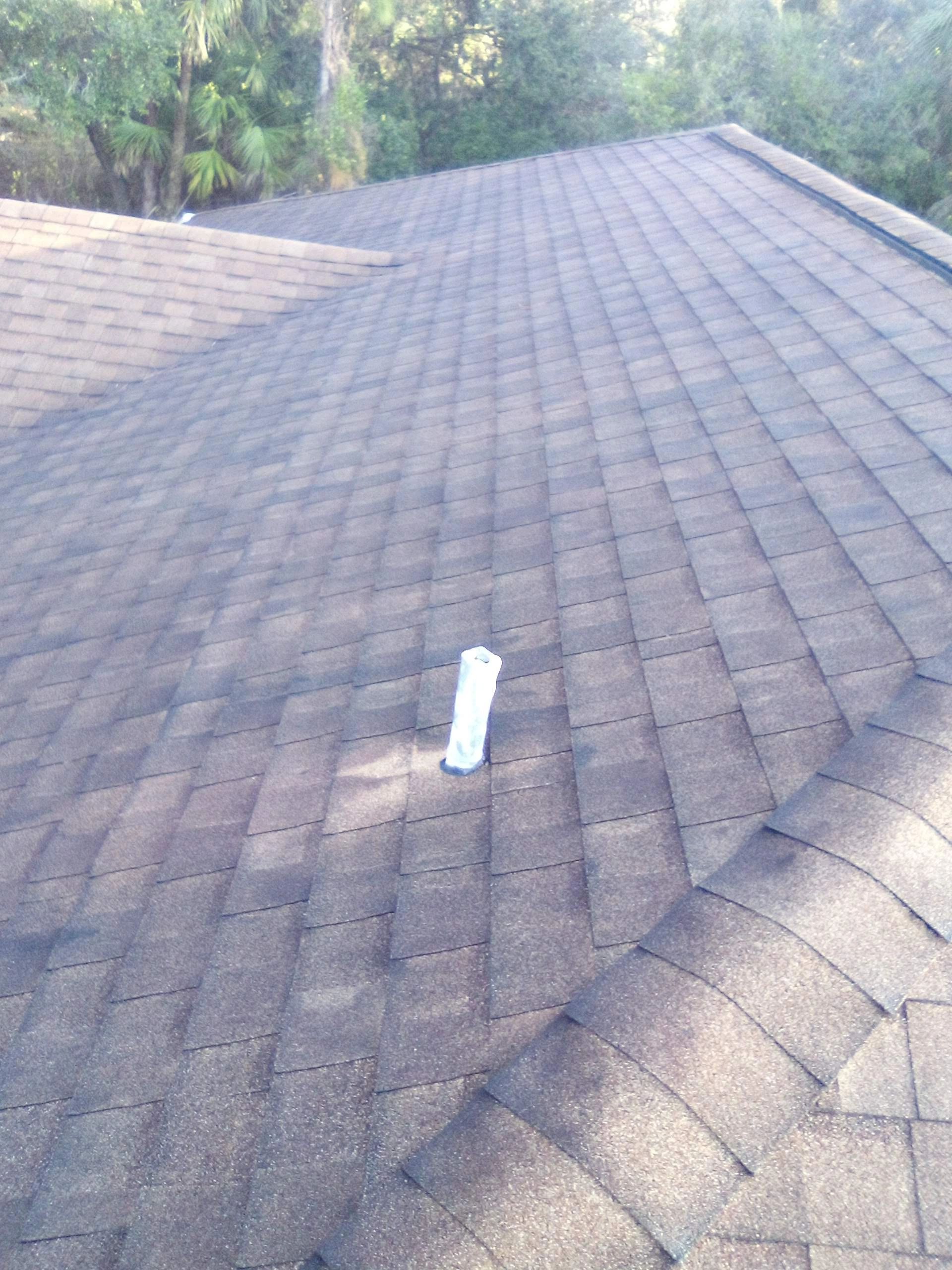 Our Shingle roof cleaning is a soft wash process. We spray a 30-40% mixture of cleaner to 60-70% water on the roof to loosen the organic stains. After about 20-30 minutes we lightly rinse the roof with a low pressure tip and 100% water to completely remove the stains and cleaner.